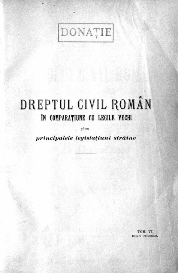 Alexandresco, Dimitrie. Explicaţiunea teoretică şi practică a dreptului civil român în comparaţiune cu legile vechi şi cu principalele legislaţiuni străine. Tom. 6 (1900)