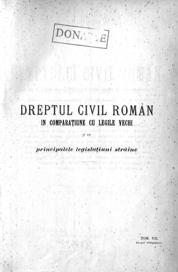 Alexandresco, Dimitrie. Explicaţiunea teoretică şi practică a dreptului civil român în comparaţiune cu legile vechi şi cu principalele legislaţiuni străine. Tom. 7 (1901)