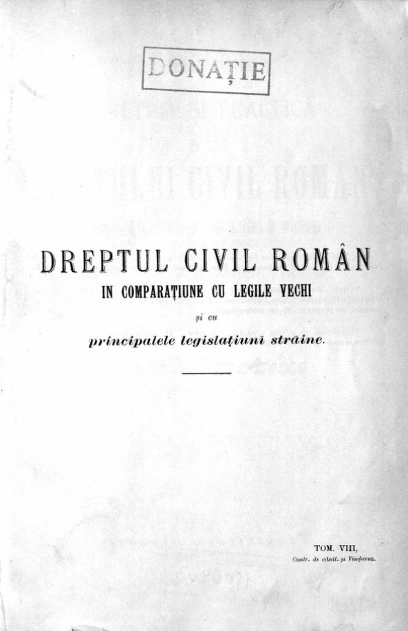 Alexandresco, Dimitrie. Explicaţiunea teoretică şi practică a dreptului civil român în comparaţiune cu legile vechi şi cu principalele legislaţiuni străine. Tom. 8 (1905)