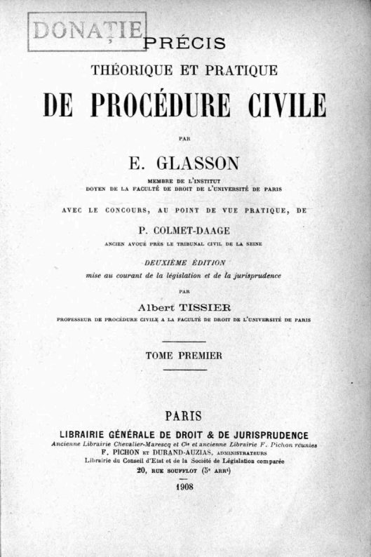 Glasson, Ernest. Précis théorique et pratique de procédure civile. Tome 1 (1908)