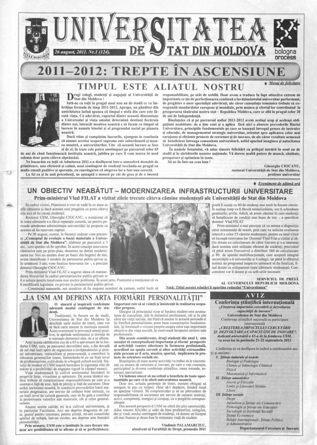 Ziarul USM – Nr. 1 (124) 26 august 2011