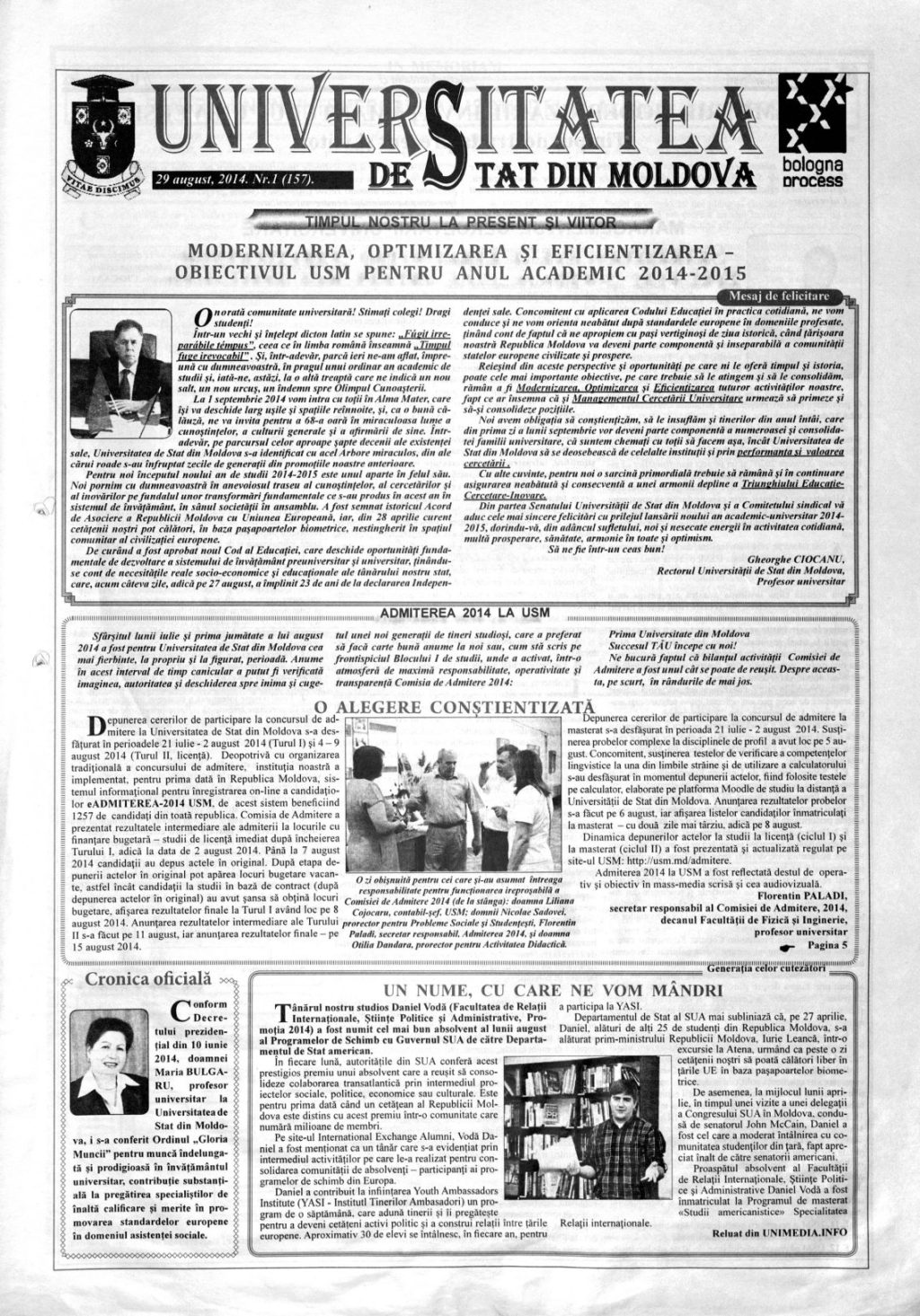 Ziarul USM – Nr. 1 (157) 29 august 2014