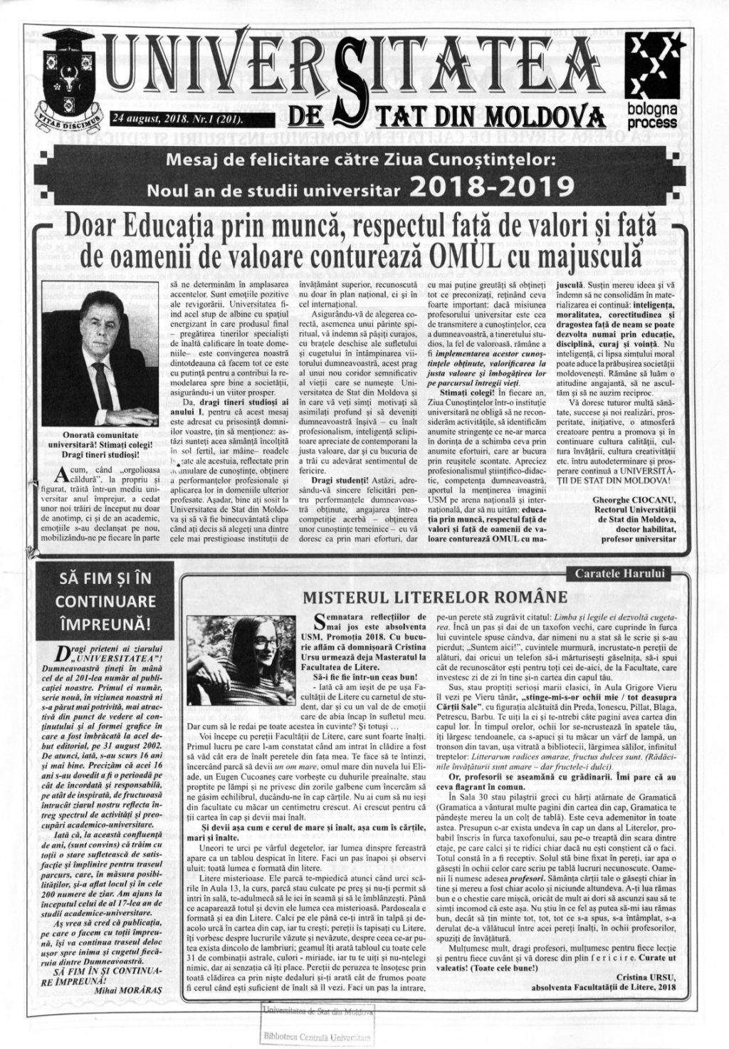 Ziarul USM – Nr. 1 (201) 24 august 2018