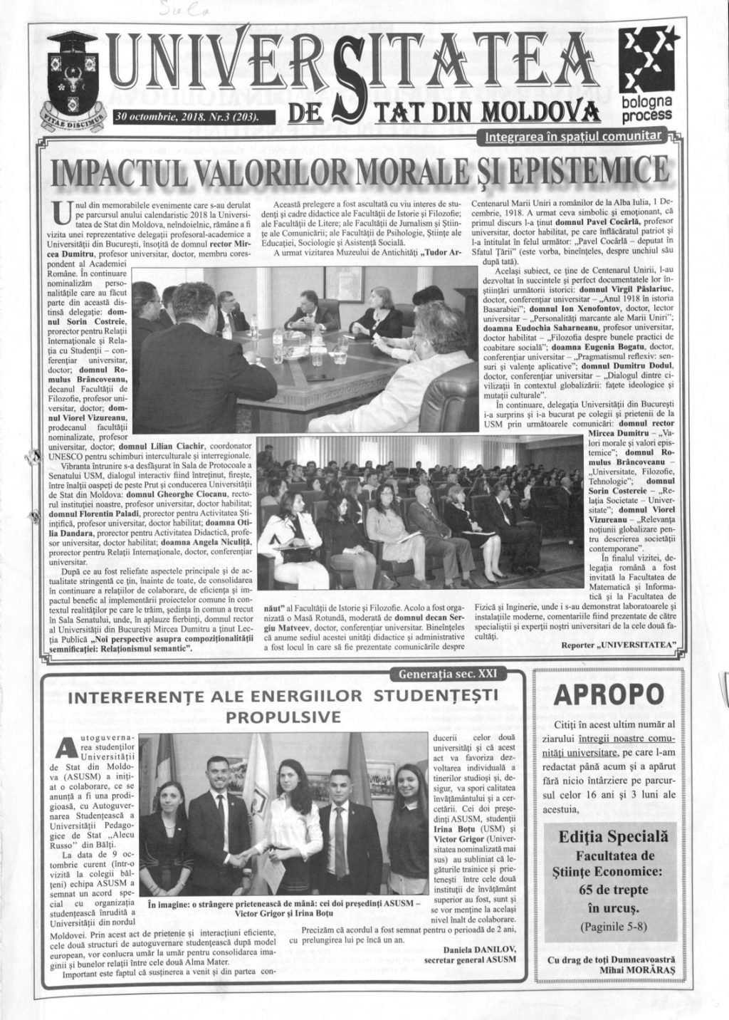 Ziarul USM – Nr. 3 (203) 30 octombrie 2018