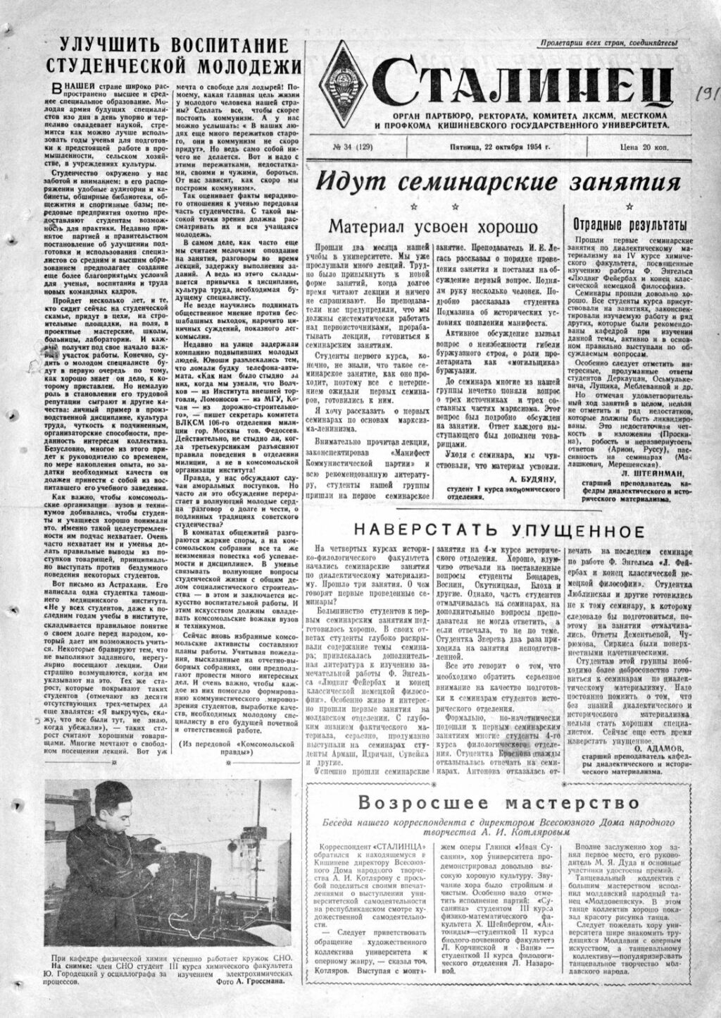Ziarul USM – Nr. 34 (129) 22 octombrie 1954