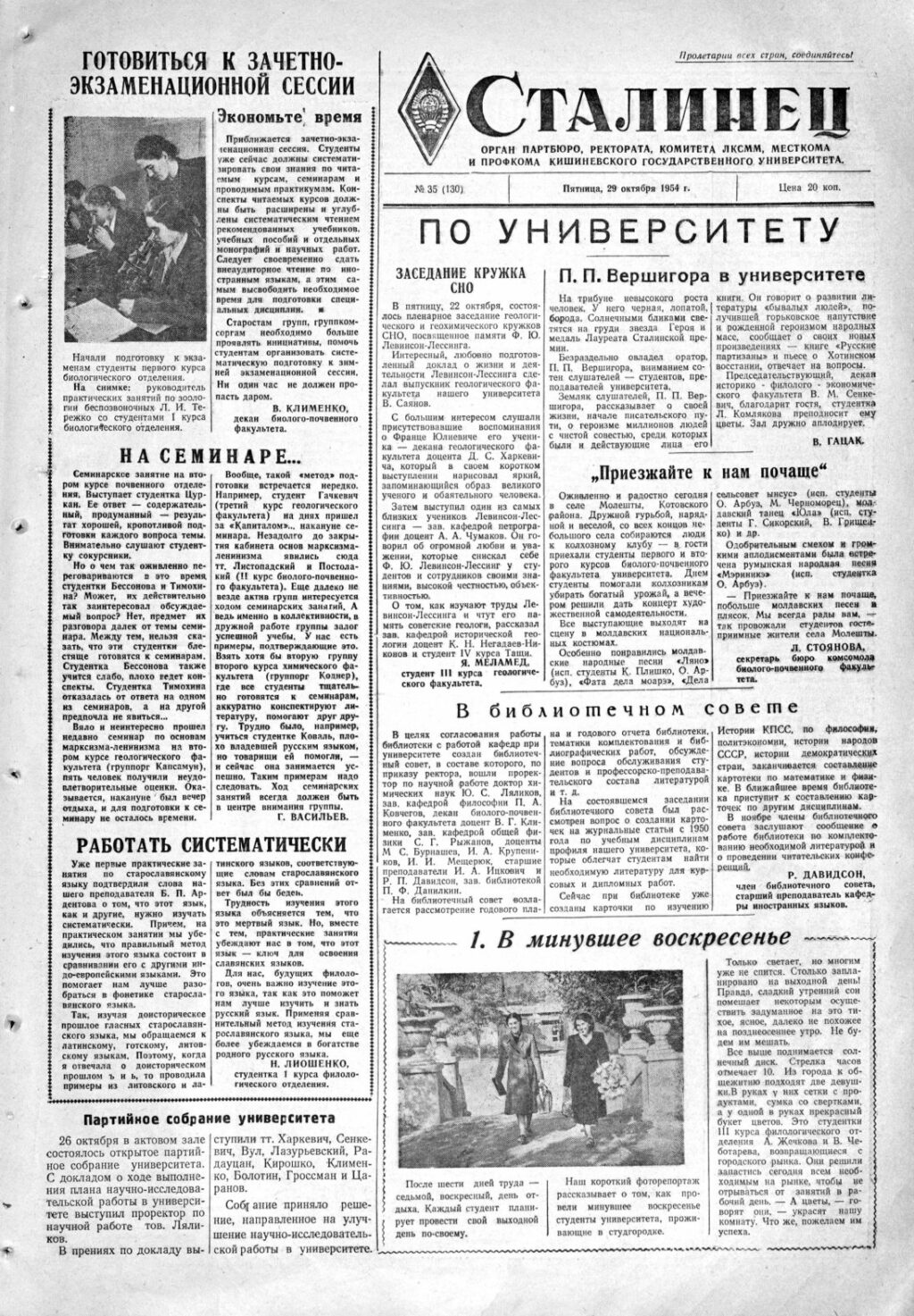 Ziarul USM – Nr. 35 (130) 29 octombrie 1954