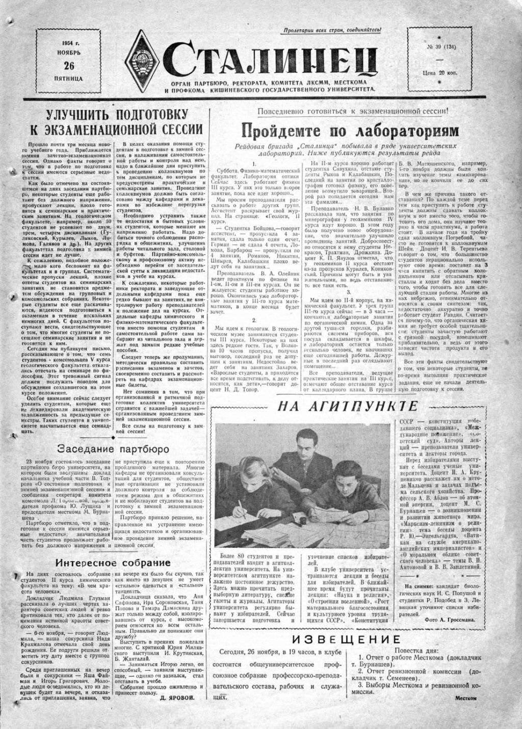 Ziarul USM – Nr. 39 (134) 26 noiembrie 1954