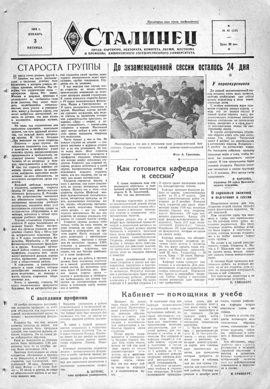 Ziarul USM – Nr. 41 (136) 10 decembrie 1954