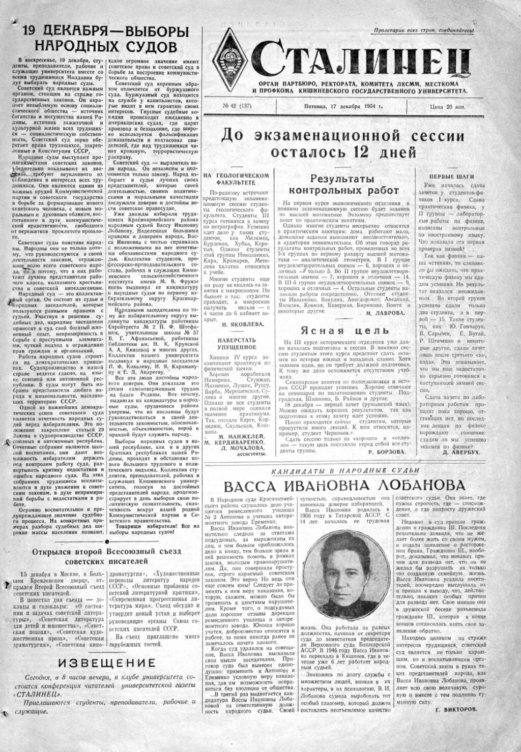 Ziarul USM – Nr. 42 (137) 17 decembrie 1954
