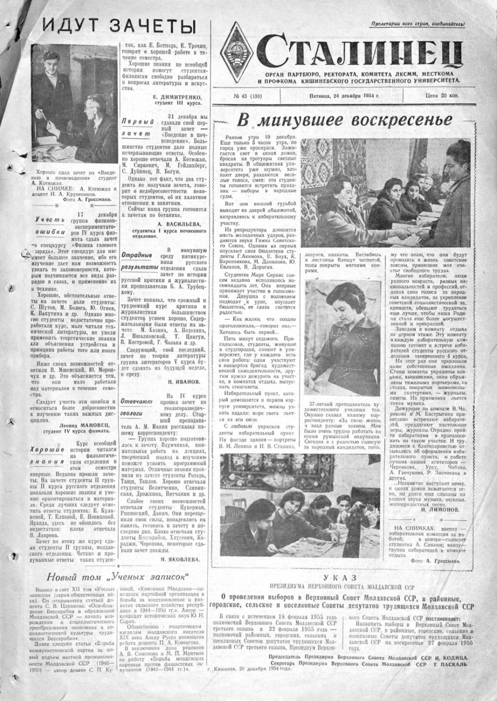 Ziarul USM – Nr. 43 (138) 24 decembrie 1954