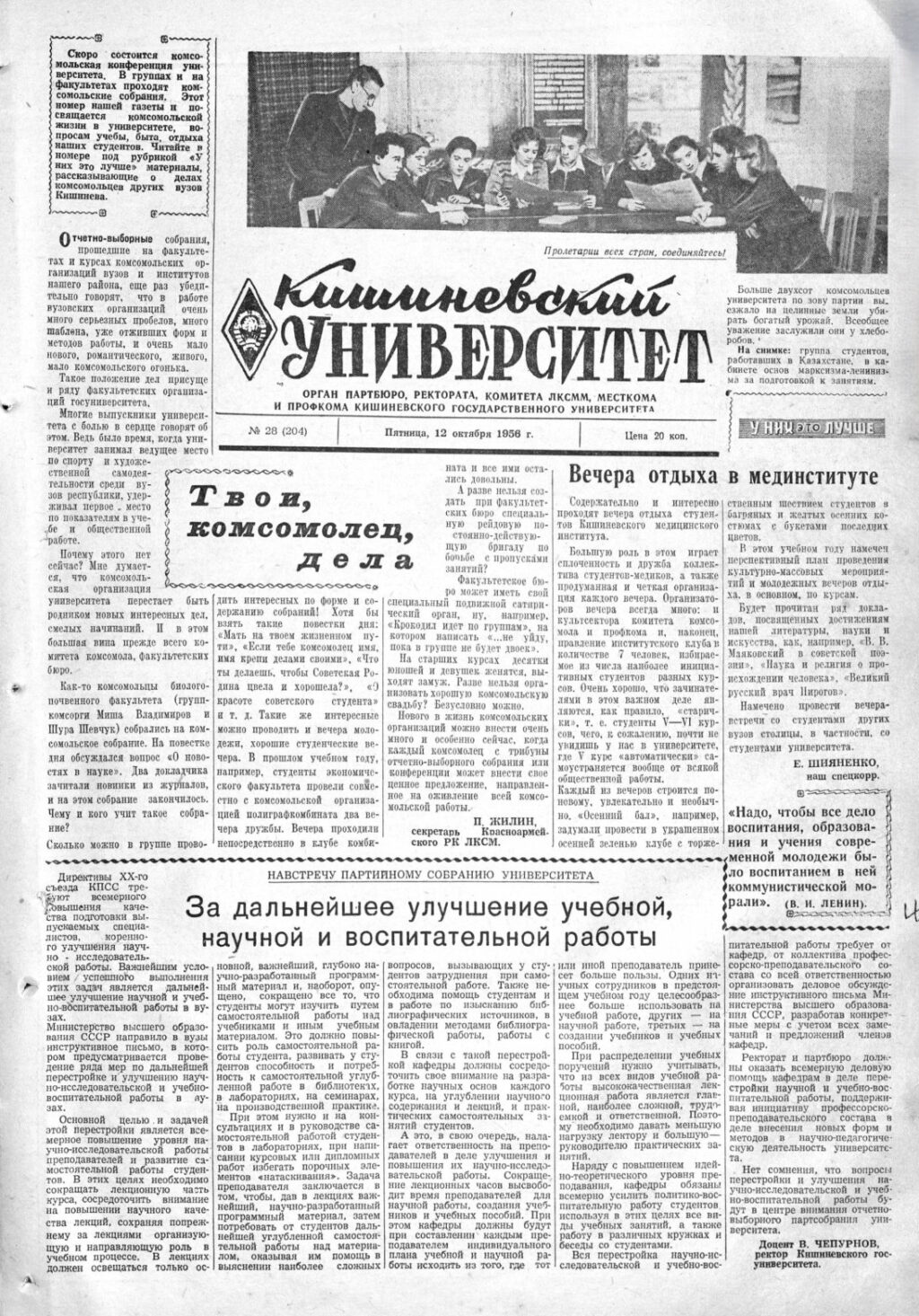Ziarul USM – Nr. 28 (204) 12 octombrie 1956