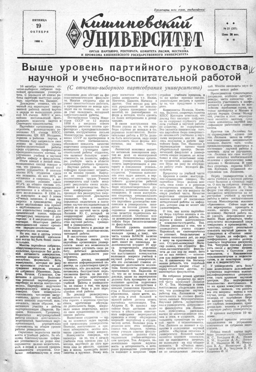 Ziarul USM – Nr. 29 (205) 19 octombrie 1956