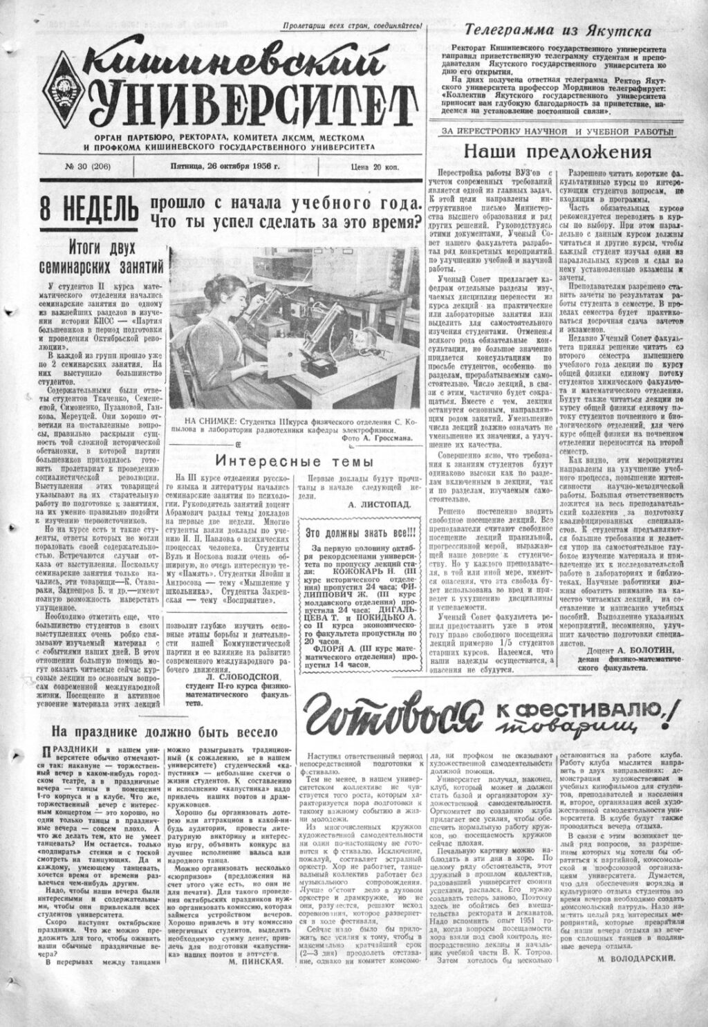 Ziarul USM – Nr. 30 (206) 26 octombrie 1956