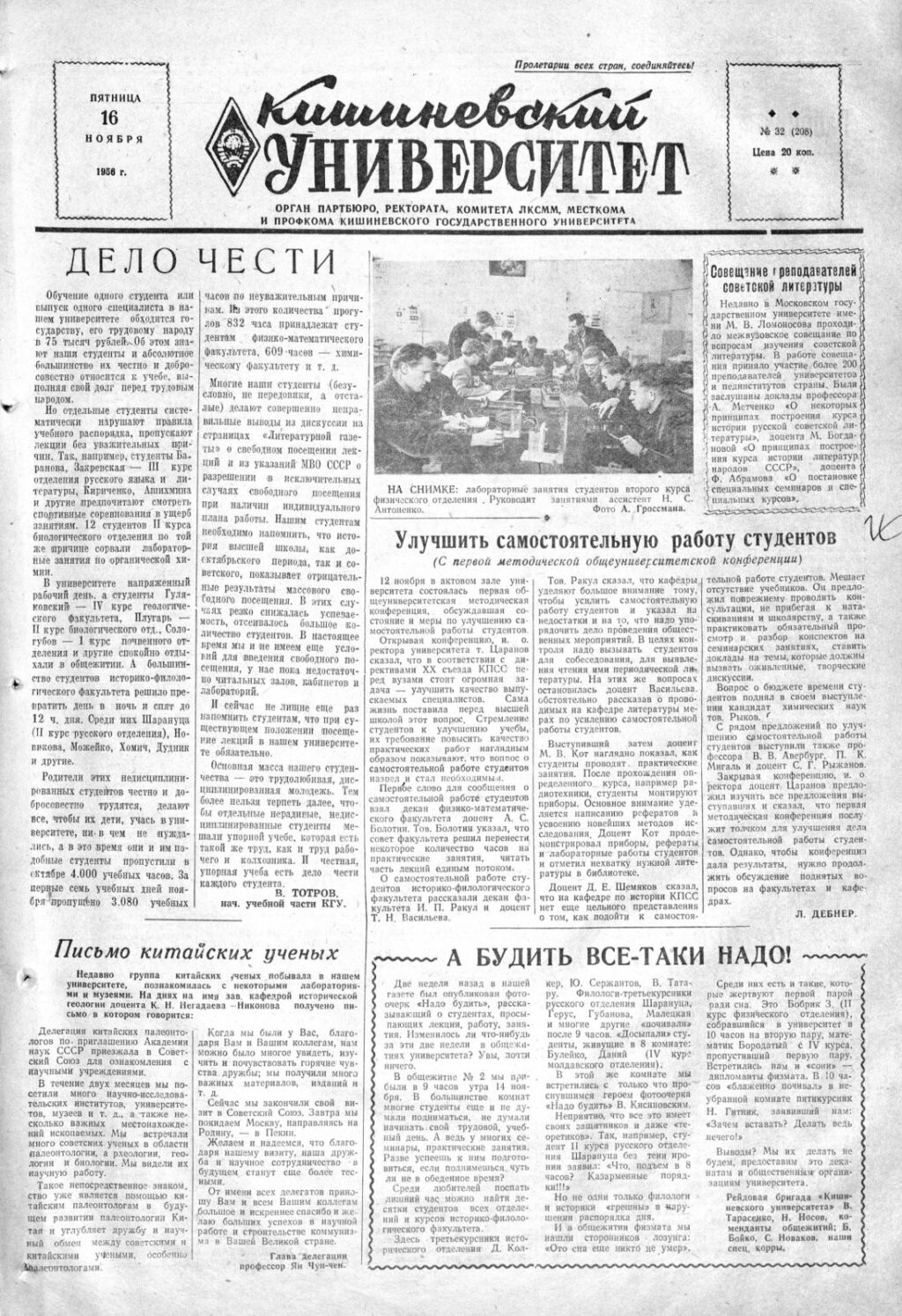 Ziarul USM – Nr. 32 (208) 16 noiembrie 1956