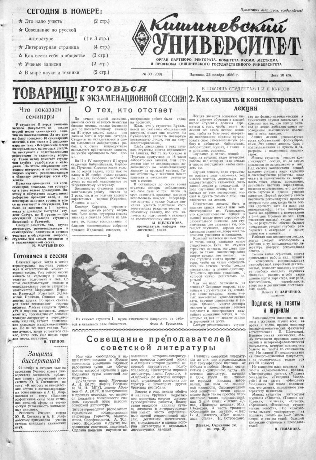 Ziarul USM – Nr. 33 (209) 23 noiembrie 1956