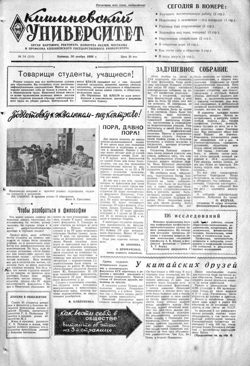 Ziarul USM – Nr. 34 (210) 30 noiembrie 1956