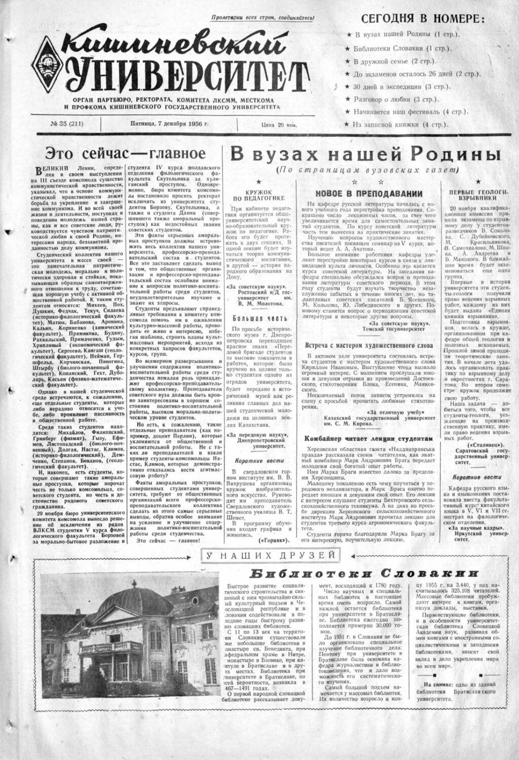 Ziarul USM – Nr. 35 (211) 7 decembrie 1956