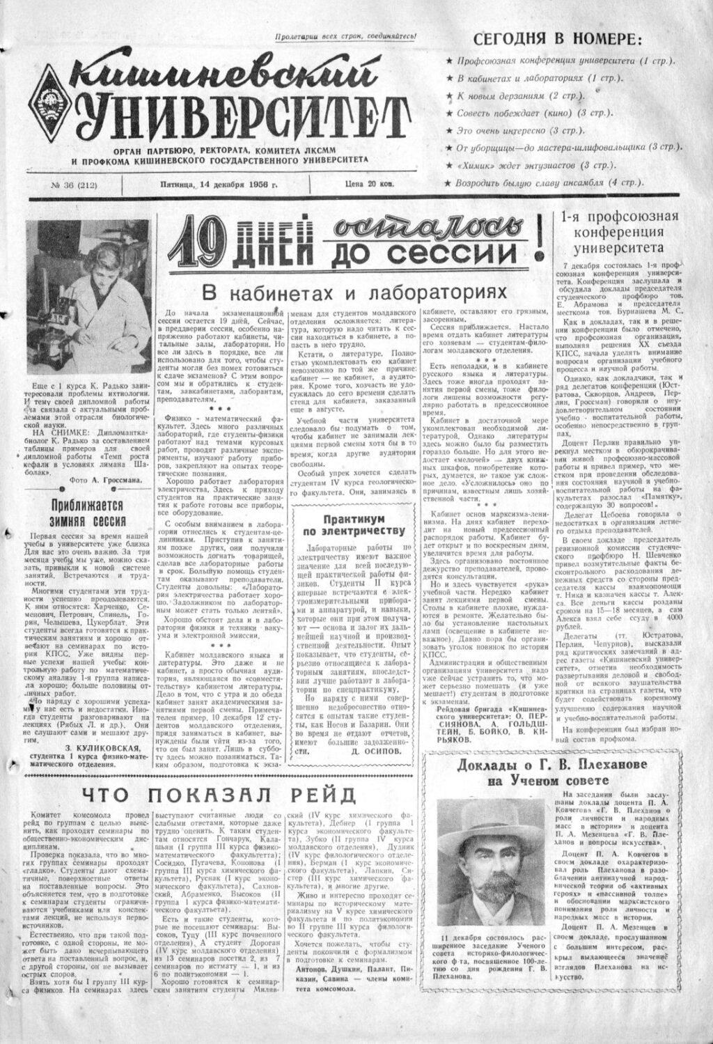 Ziarul USM – Nr. 36 (212) 14 decembrie 1956