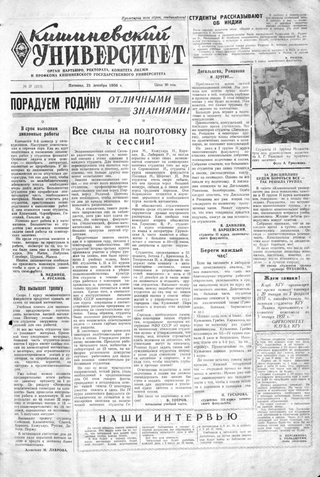 Ziarul USM – Nr. 37 (213) 21 decembrie 1956