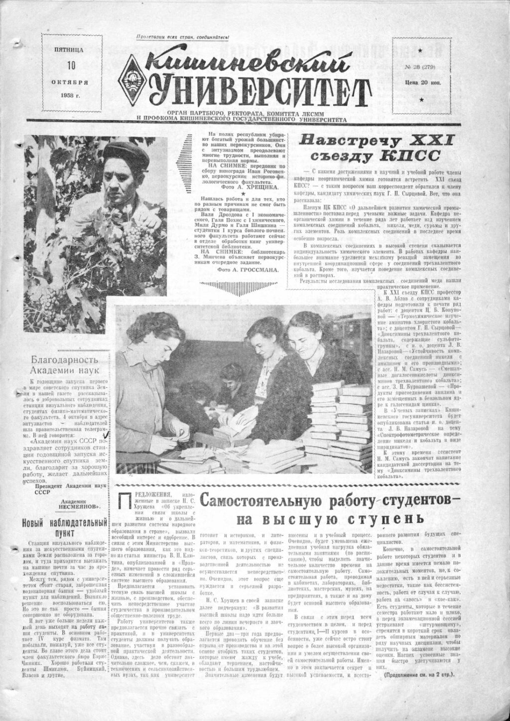 Ziarul USM – Nr. 28 (279) 10 octombrie 1958