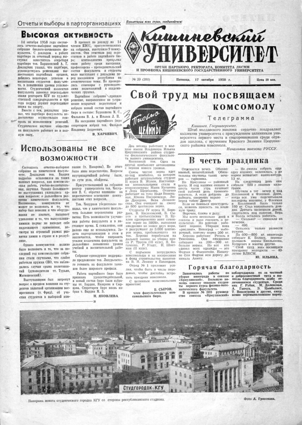 Ziarul USM – Nr. 29 (280) 17 octombrie 1958