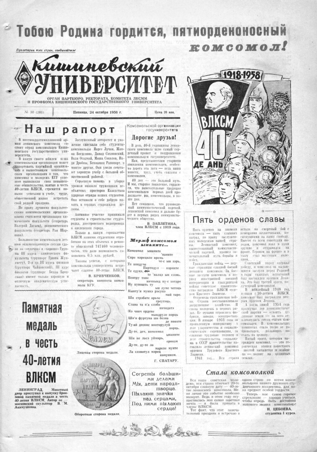 Ziarul USM – Nr. 30 (281) 24 octombrie 1958