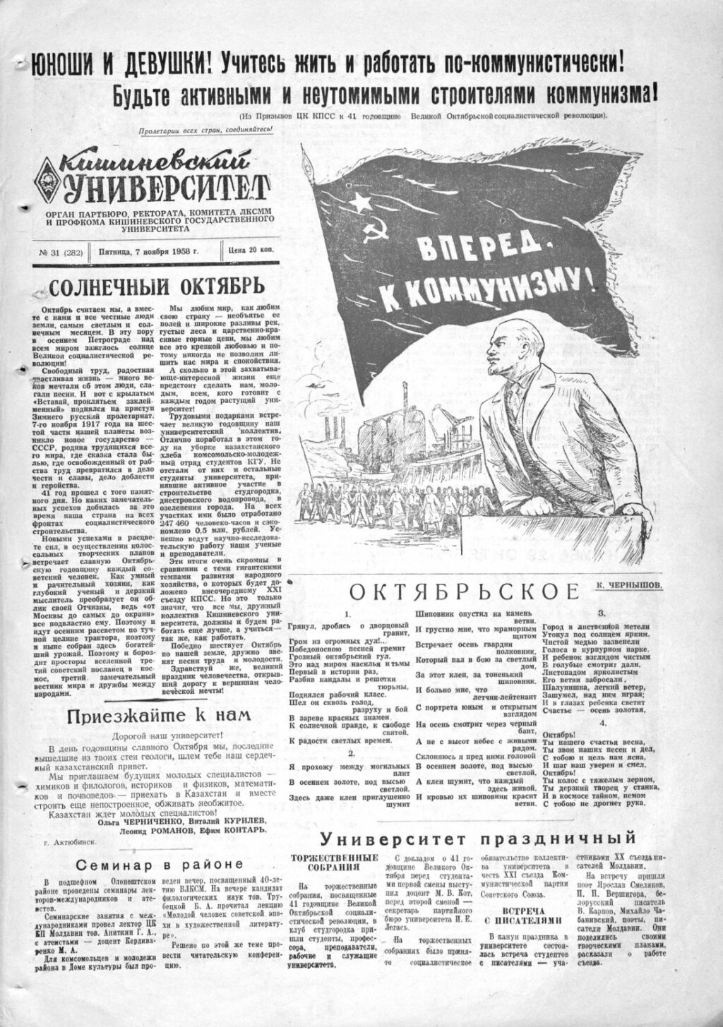 Ziarul USM – Nr. 31 (282) 7 noiembrie 1958