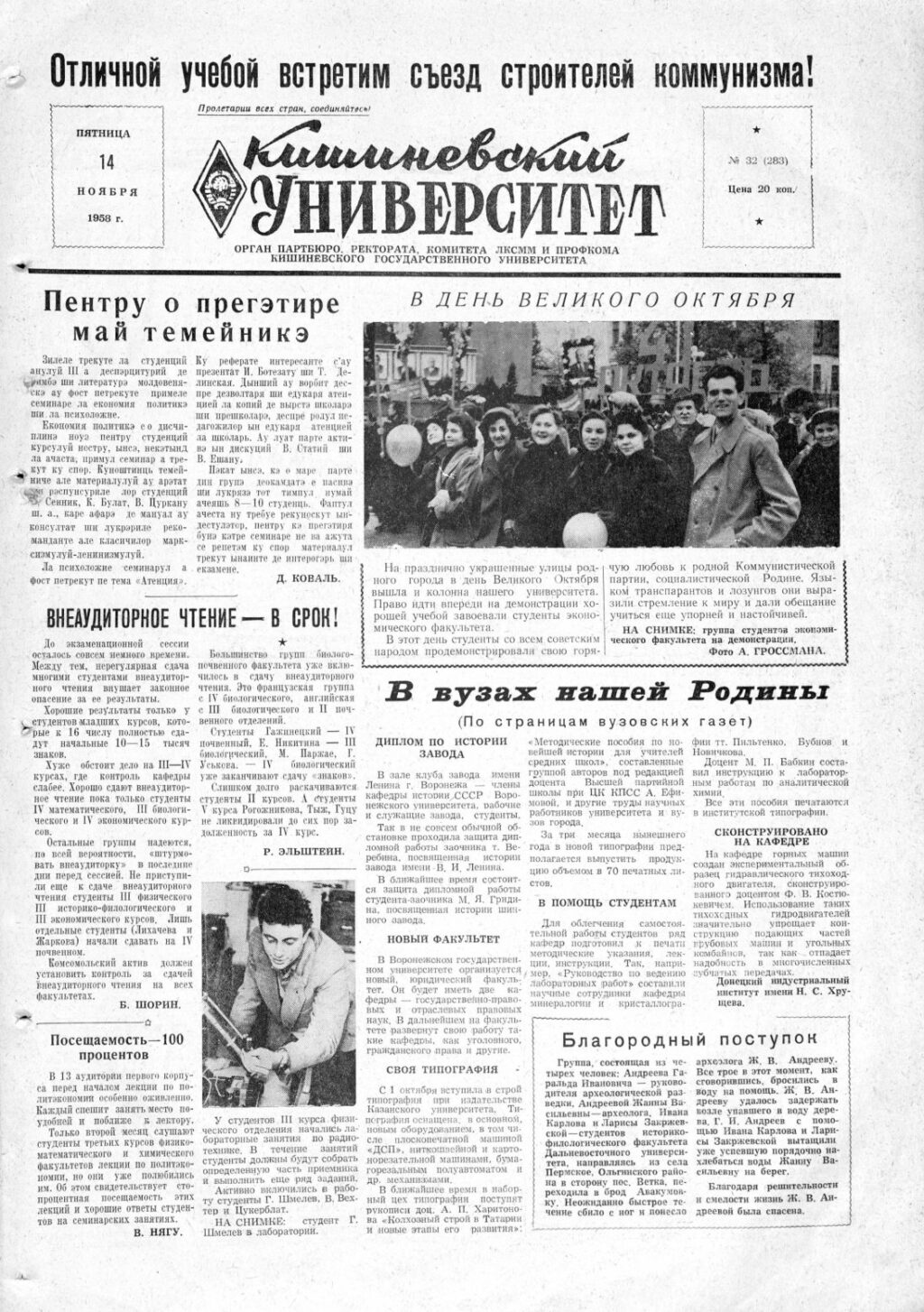 Ziarul USM – Nr. 32 (283) 14 noiembrie 1958