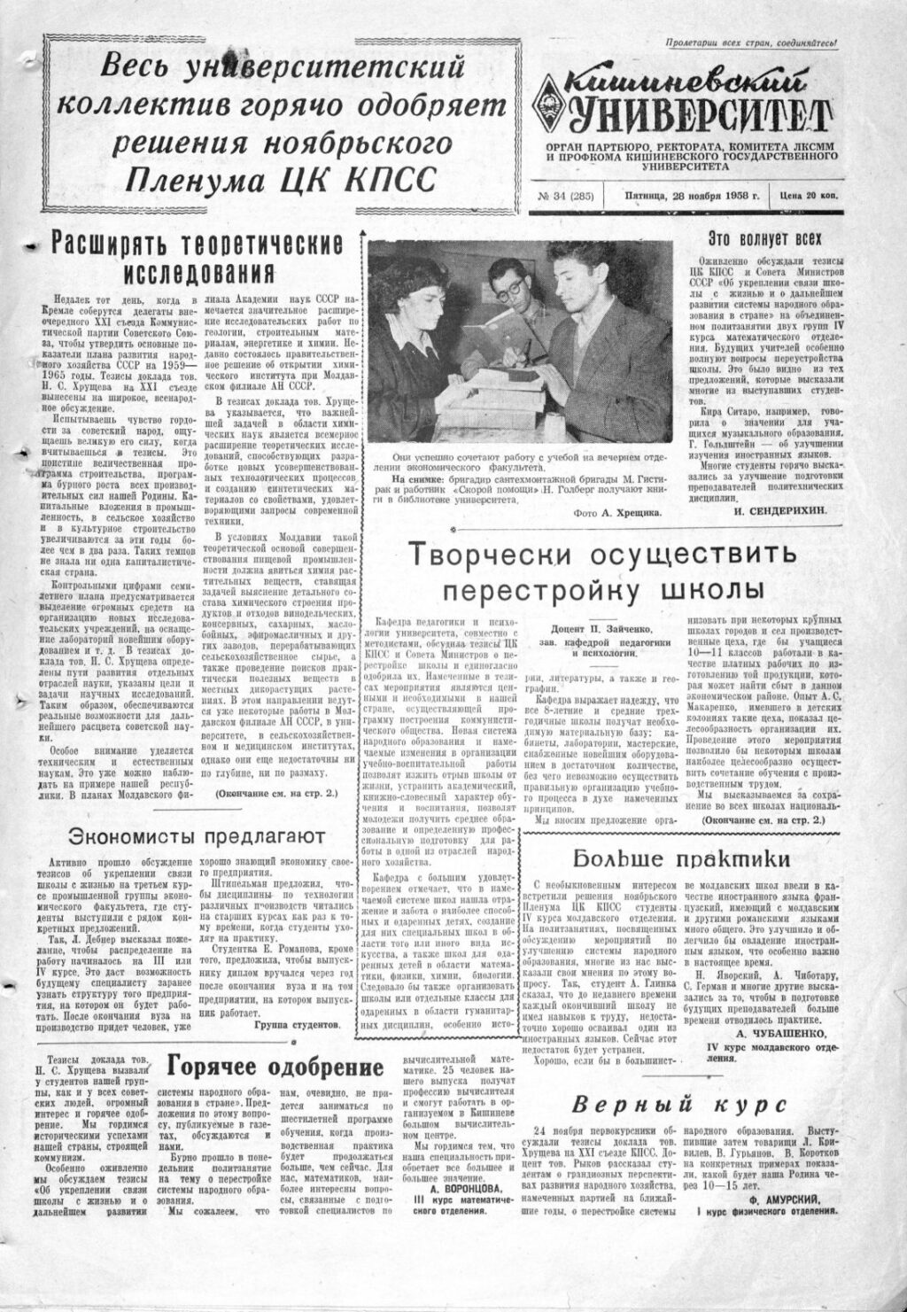 Ziarul USM – Nr. 34 (285) 28 noiembrie 1958