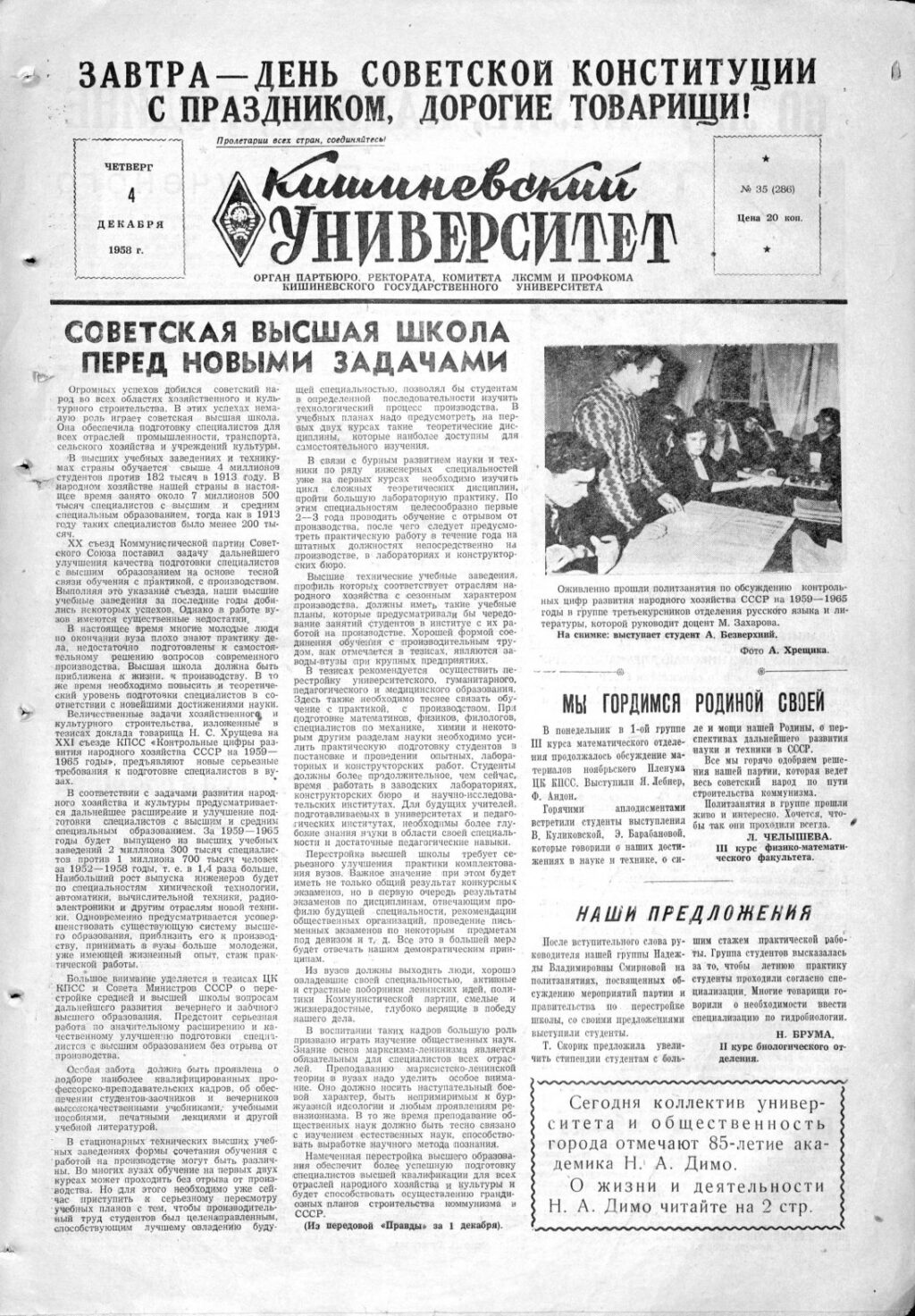 Ziarul USM – Nr. 35 (286) 4 decembrie 1958