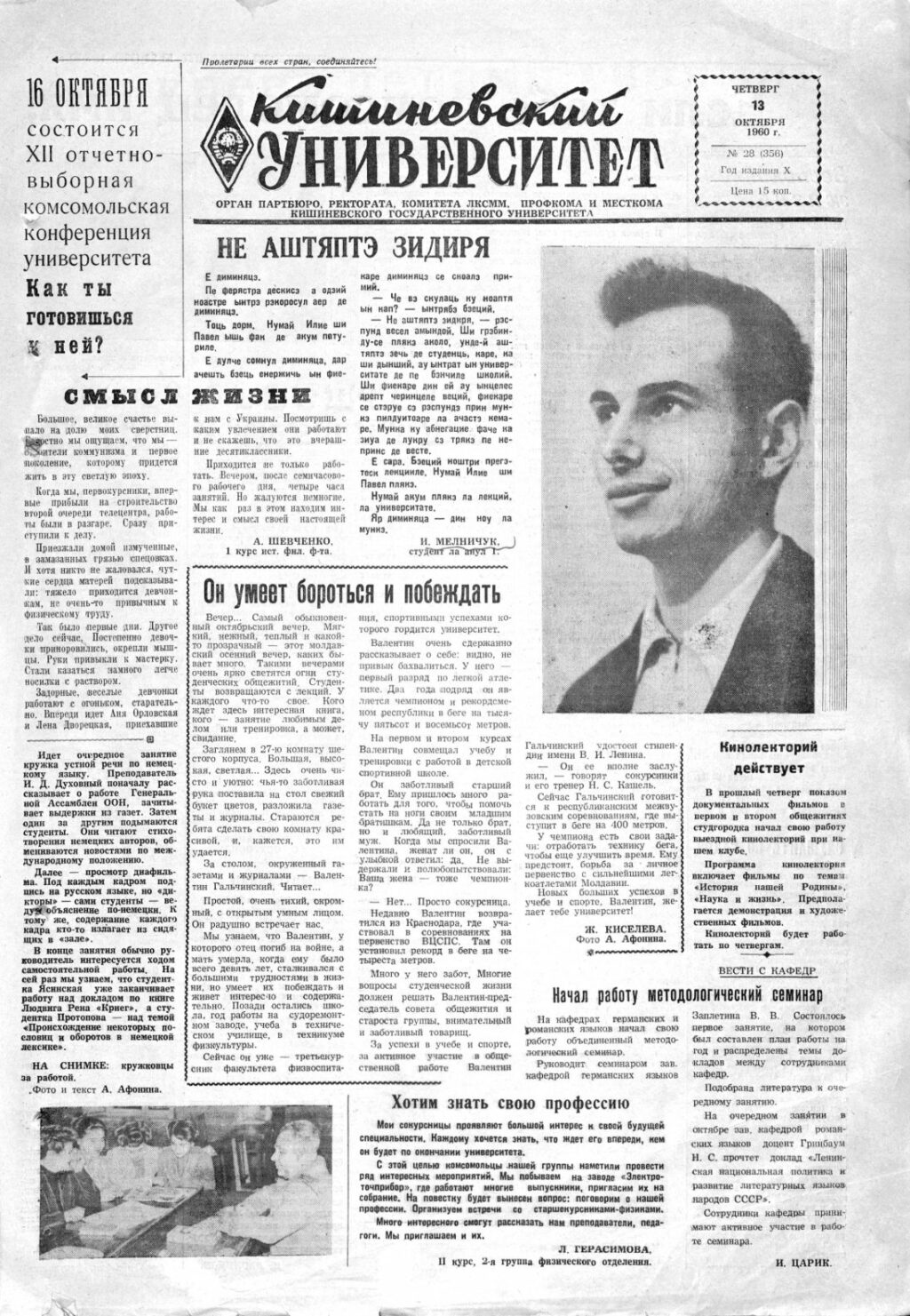 Ziarul USM – Nr. 28 (356) 13 octombrie 1960