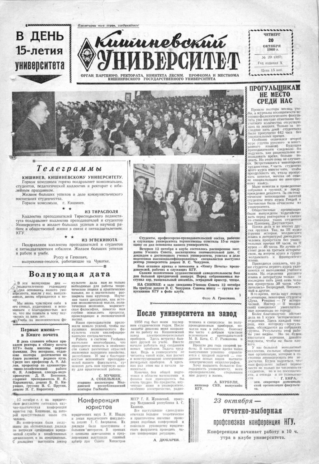 Ziarul USM – Nr. 29 (357) 20 octombrie 1960