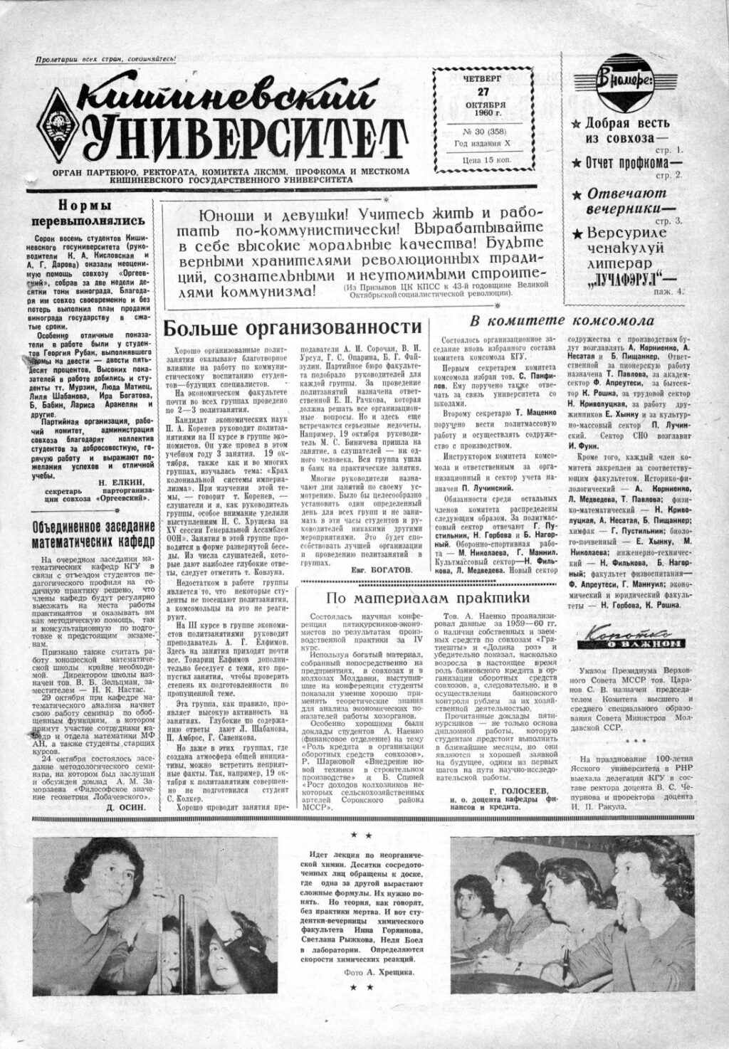 Ziarul USM – Nr. 30 (358) 27 octombrie 1960