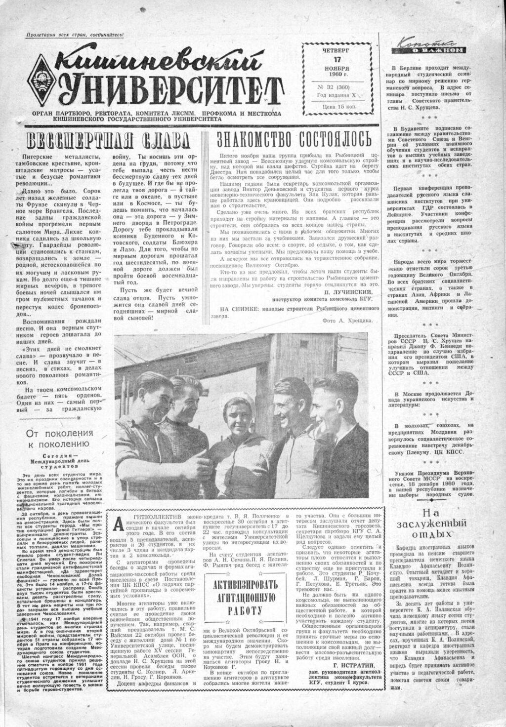 Ziarul USM – Nr. 32 (360) 17 noiembrie 1960