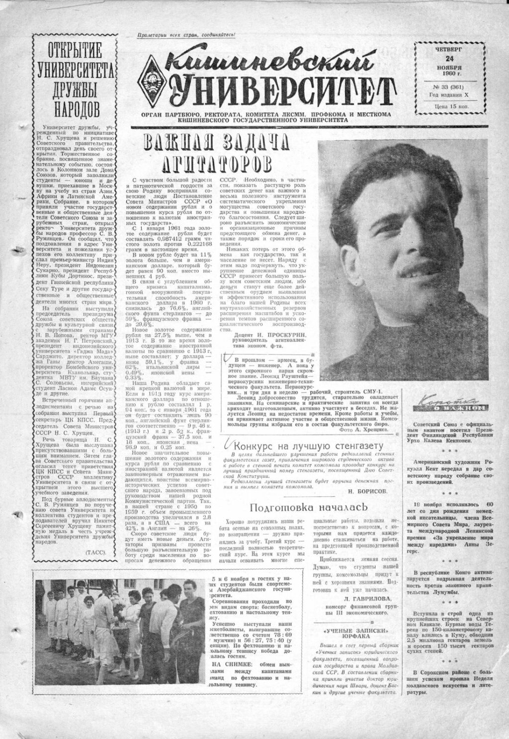 Ziarul USM – Nr. 33 (361) 24 noiembrie 1960
