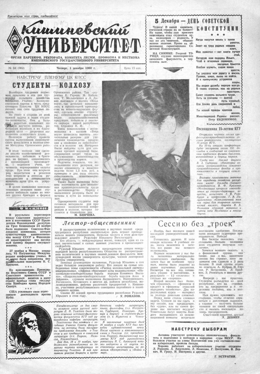 Ziarul USM – Nr. 34 (362) 1 decembrie 1960