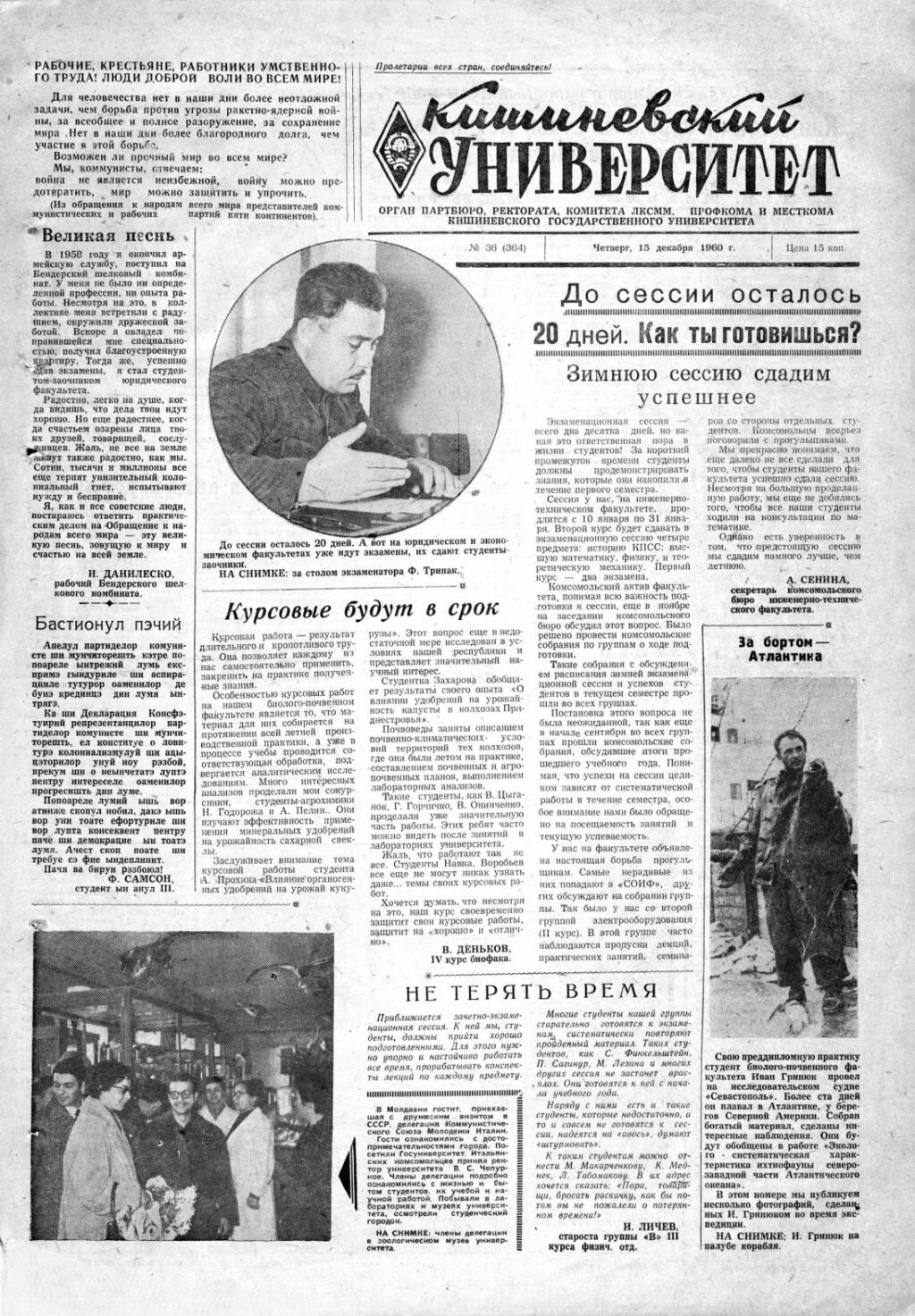 Ziarul USM – Nr. 36 (364) 15 decembrie 1960