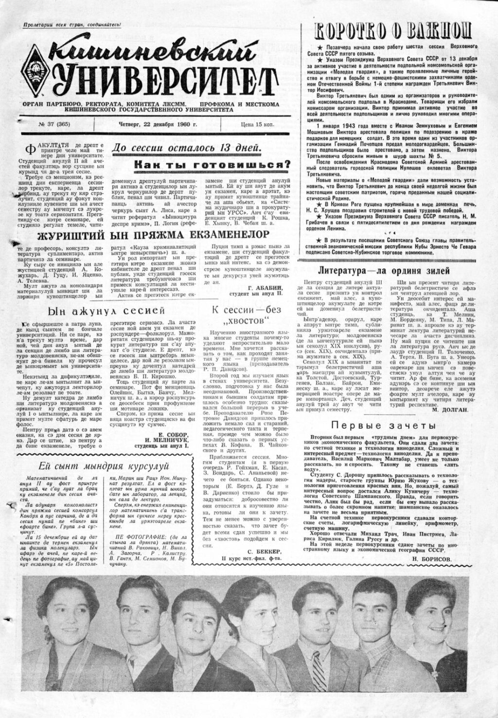 Ziarul USM – Nr. 37 (365) 22 decembrie 1960