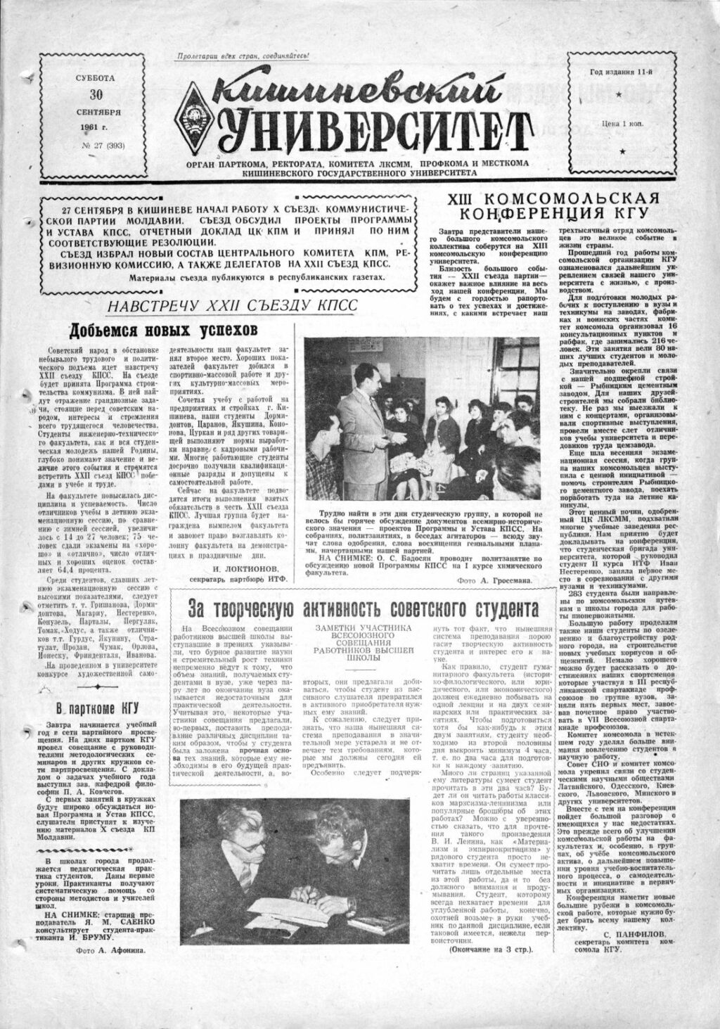 Ziarul USM – Nr. 27 (393) 30 septembrie 1961