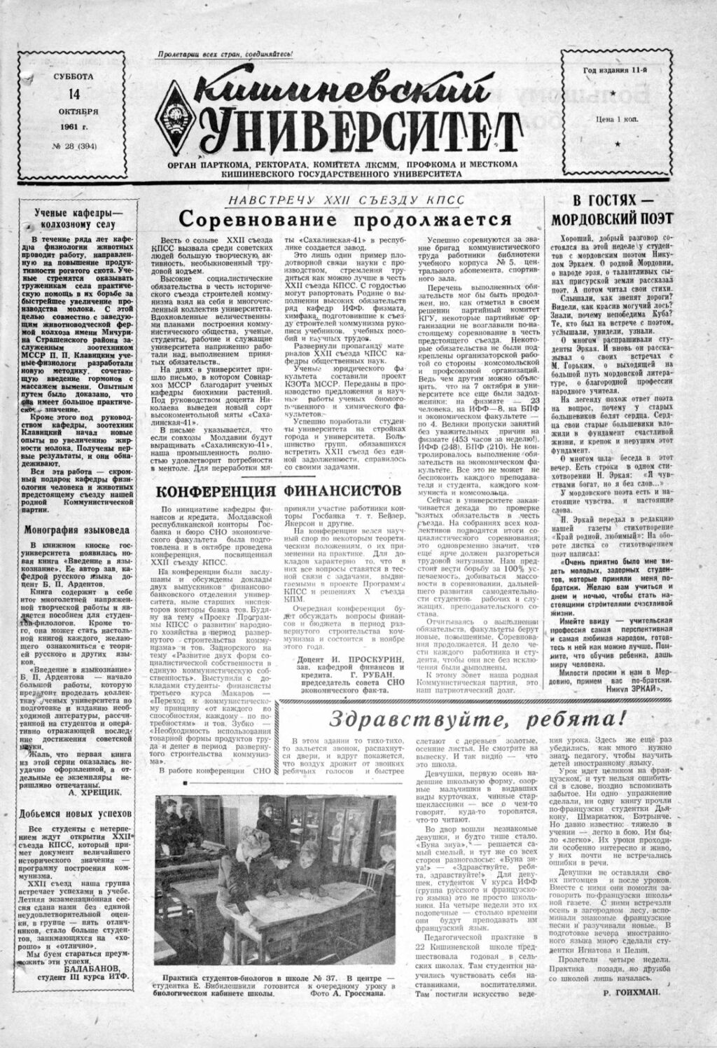 Ziarul USM – Nr. 28 (394) 14 octombrie 1961