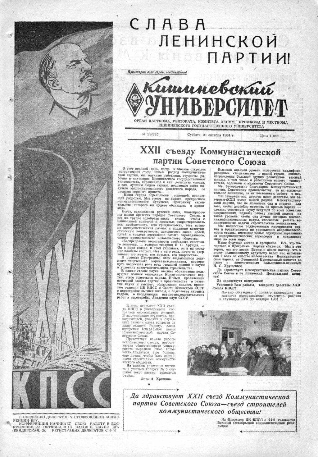 Ziarul USM – Nr. 29 (395) 21 octombrie 1961