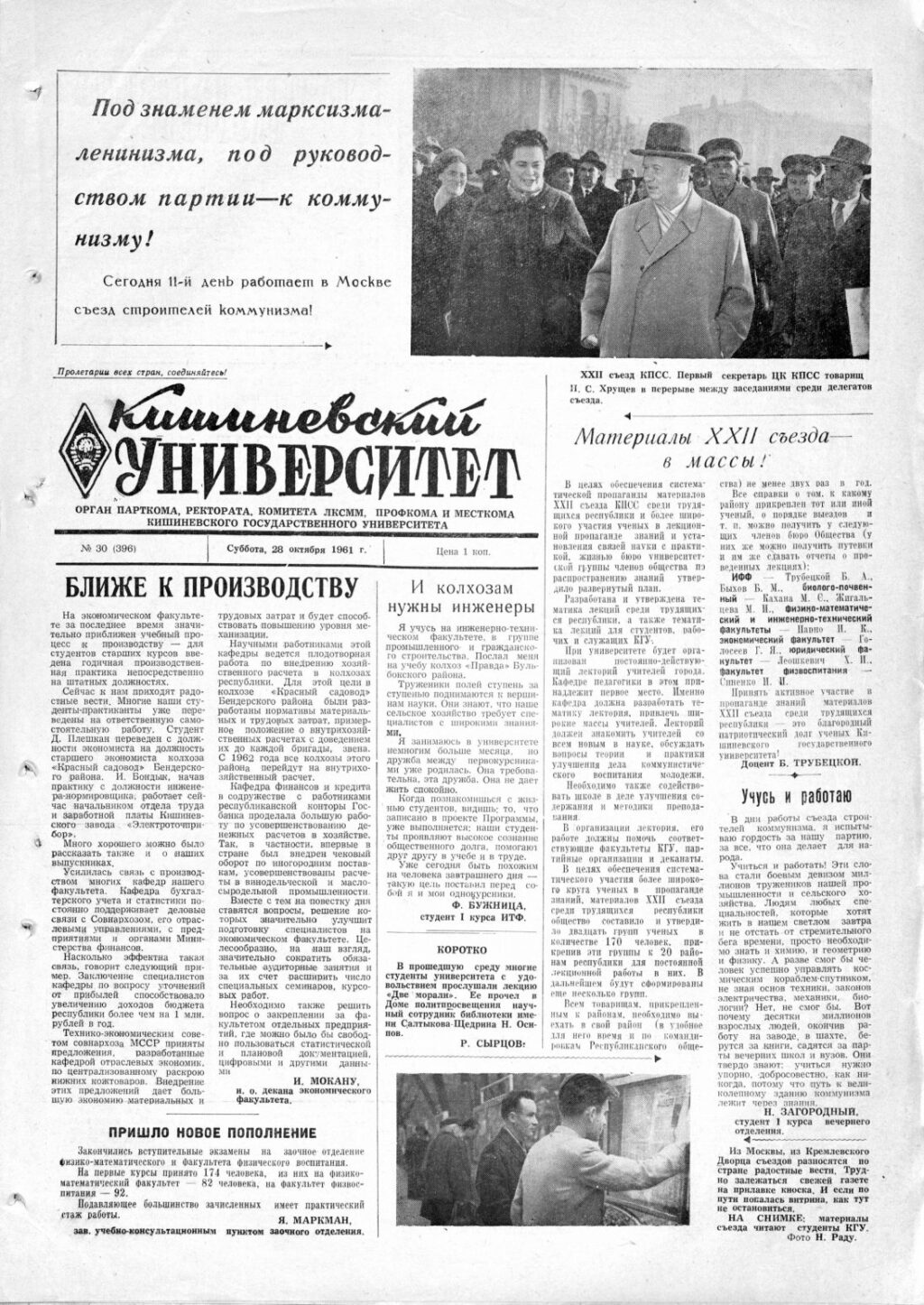 Ziarul USM – Nr. 30 (396) 28 octombrie 1961