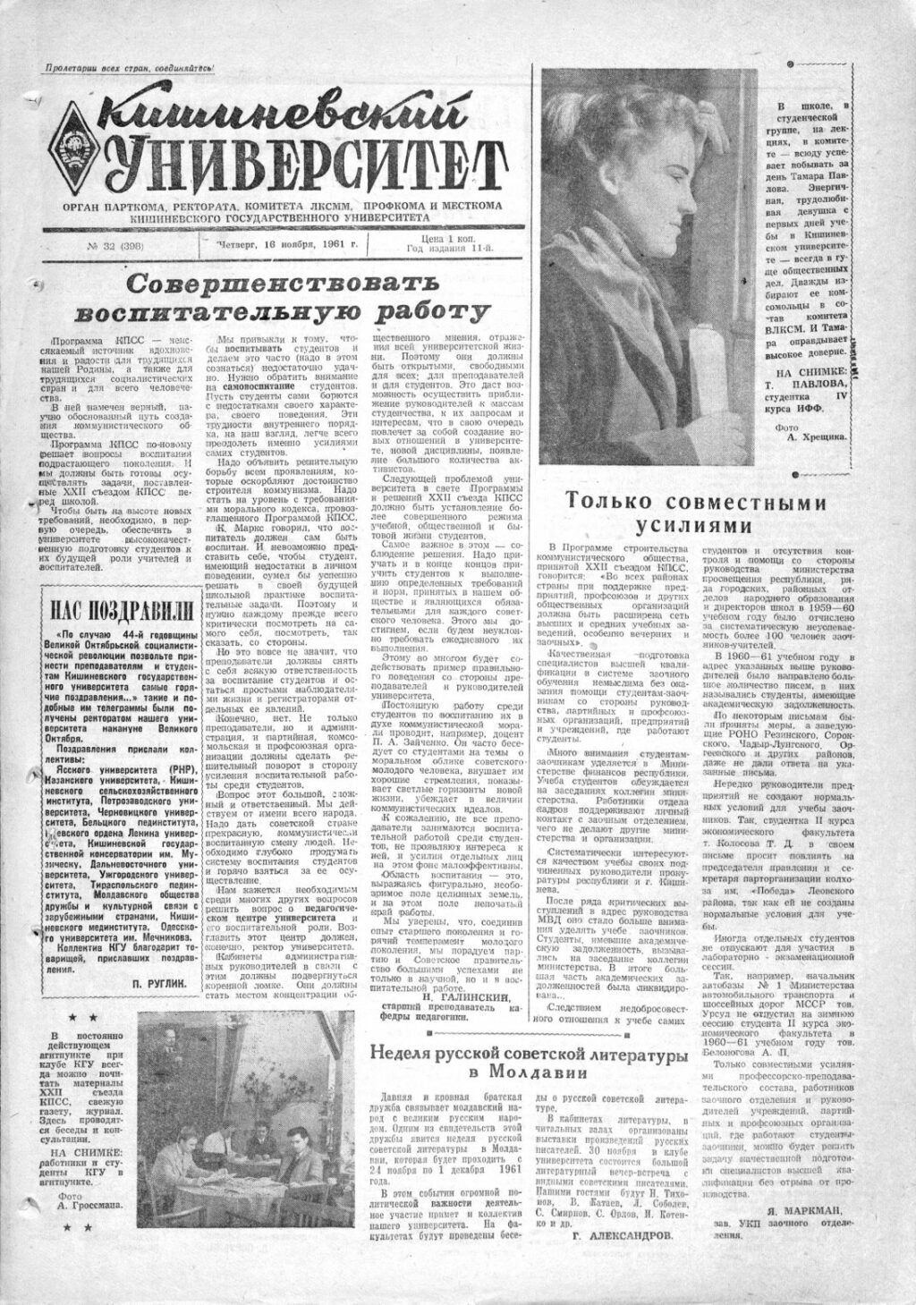 Ziarul USM – Nr. 32 (398) 16 noiembrie 1961