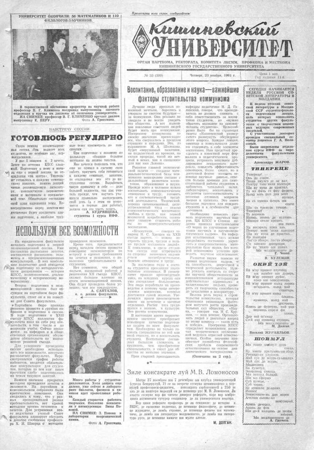 Ziarul USM – Nr. 33 (399) 23 noiembrie 1961