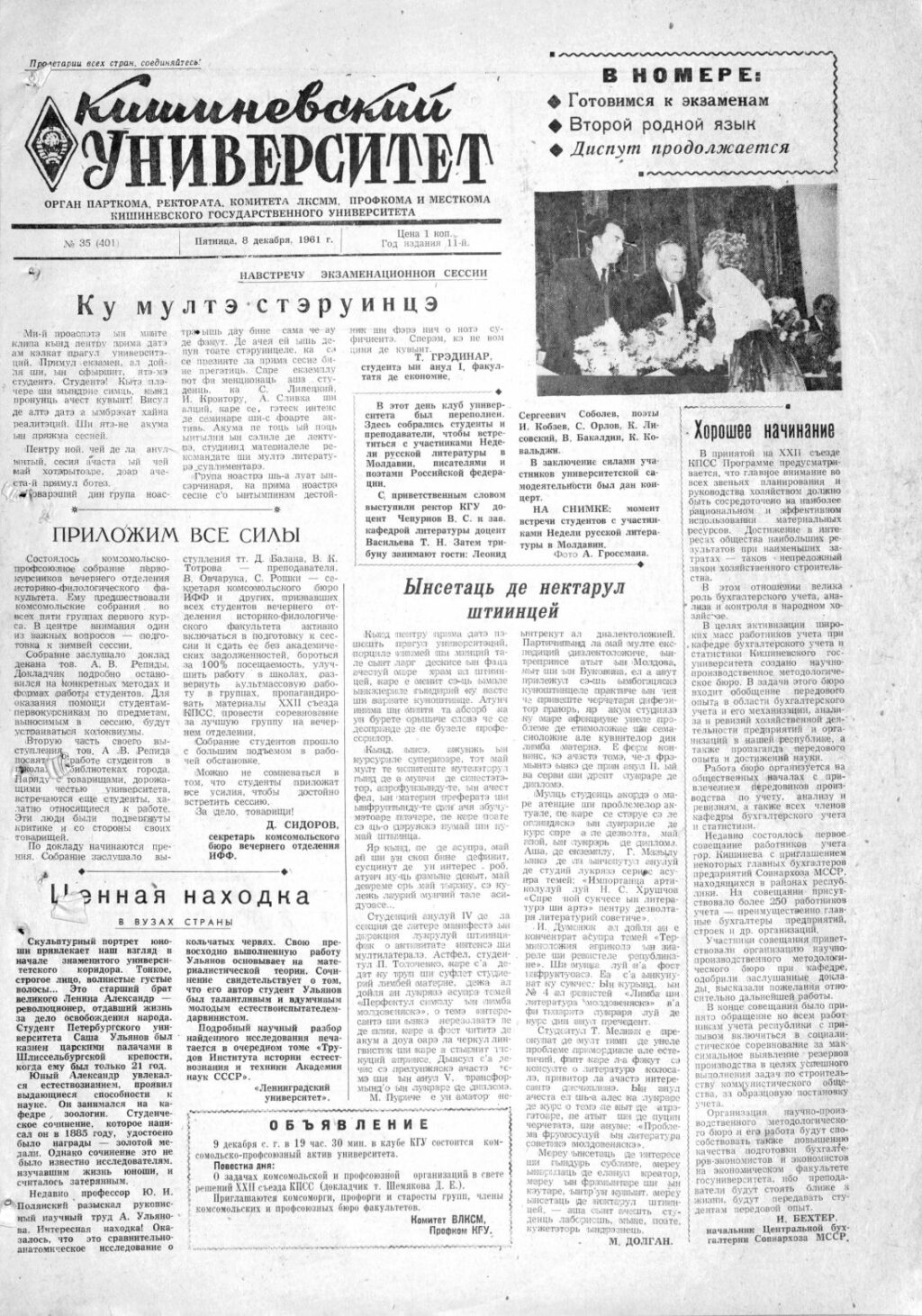 Ziarul USM – Nr. 35 (401) 8 decembrie 1961