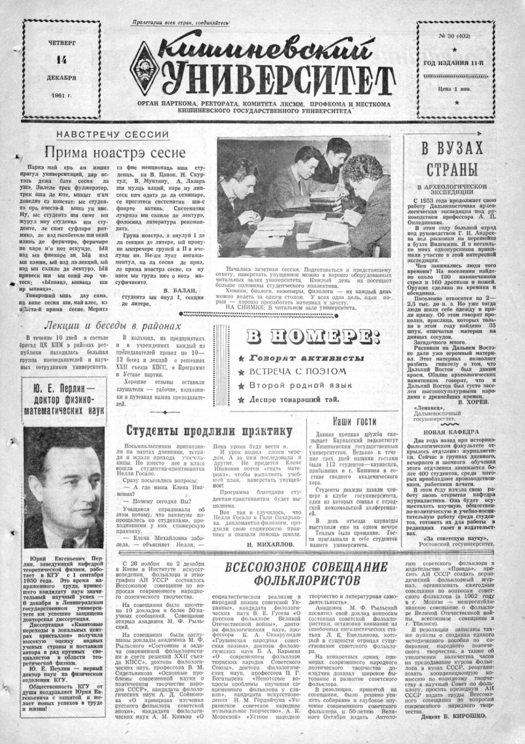 Ziarul USM – Nr. 36 (402) 14 decembrie 1961