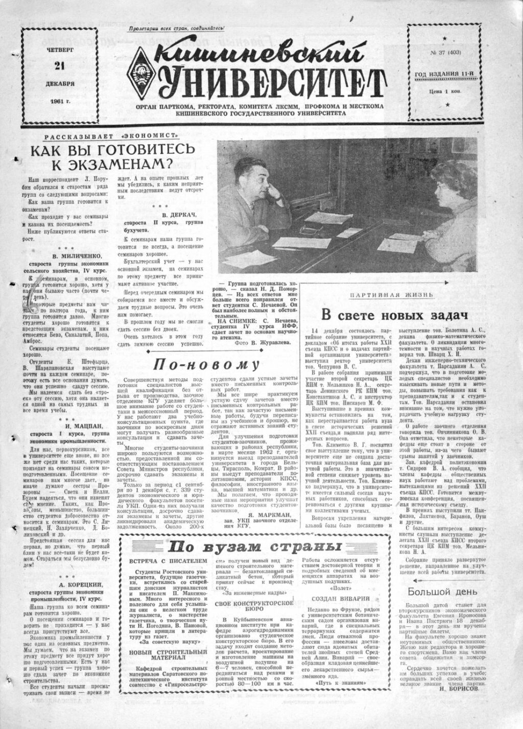 Ziarul USM – Nr. 37 (403) 21 decembrie 1961