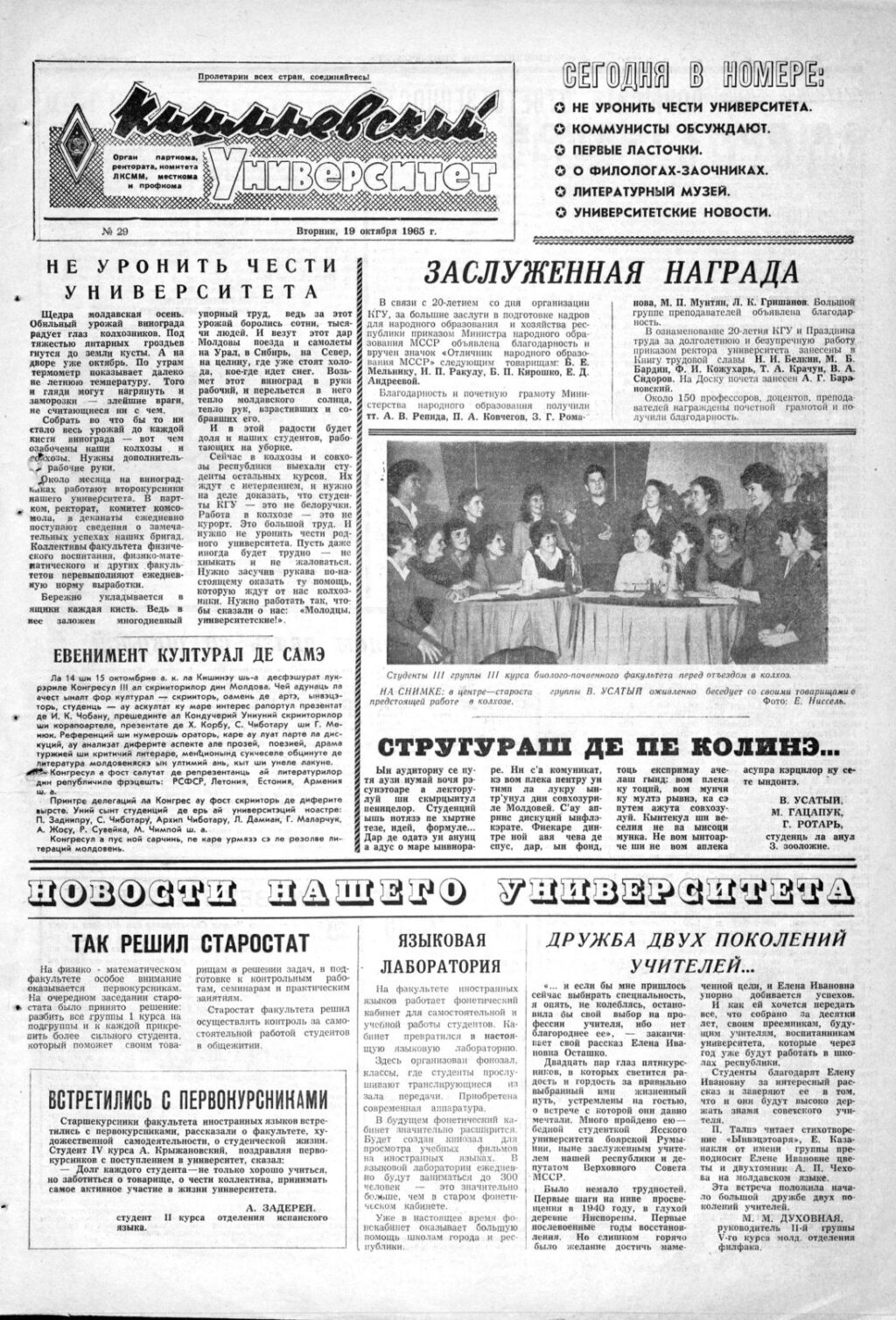 Ziarul USM – Nr. 29 – 19 octombrie 1965