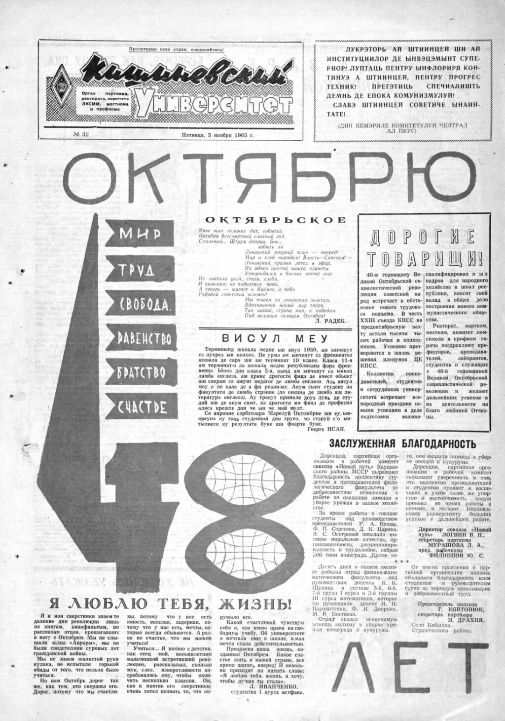 Ziarul USM – Nr. 31 – 5 noiembrie 1965