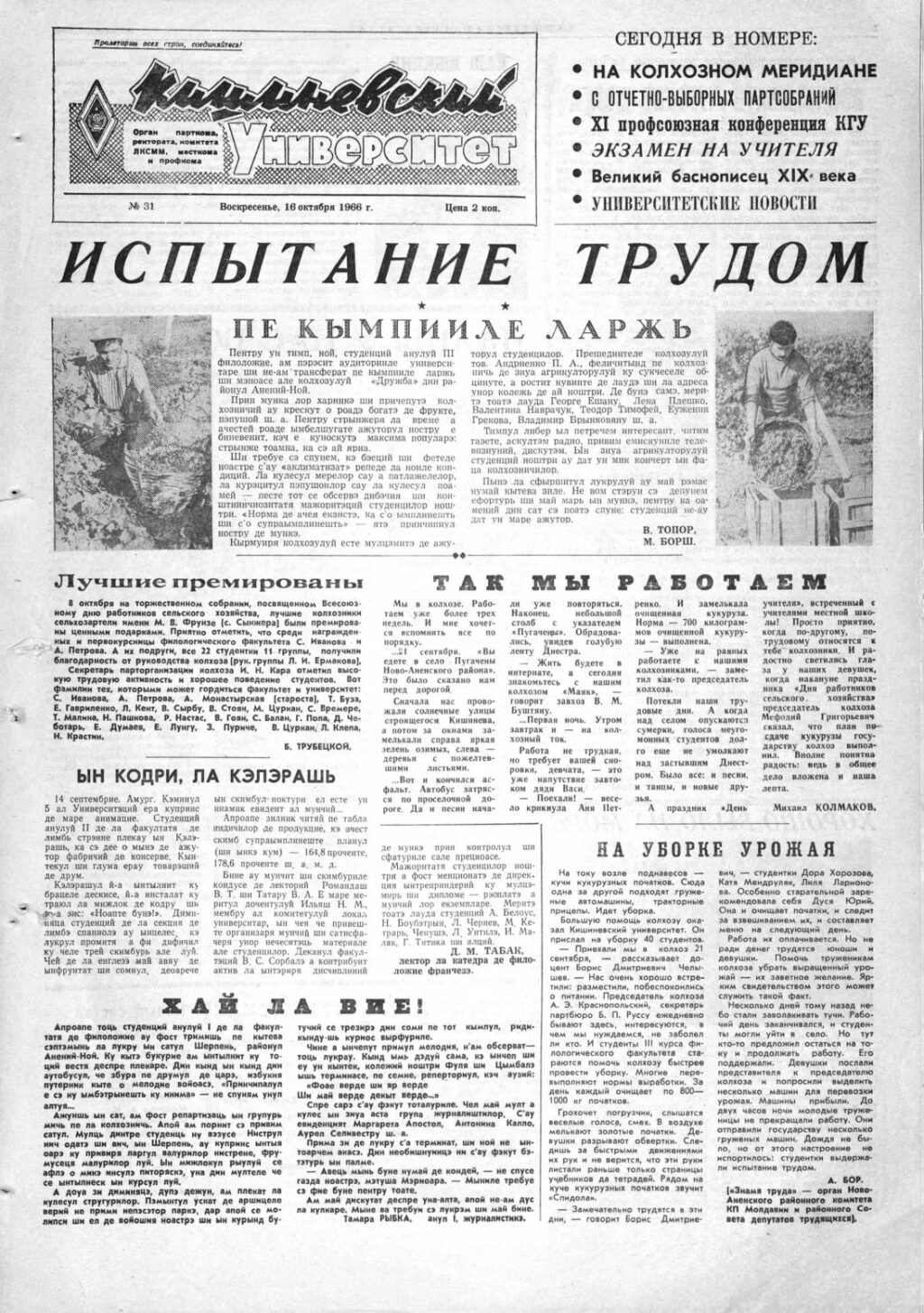 Ziarul USM – Nr. 31 – 16 octombrie 1966